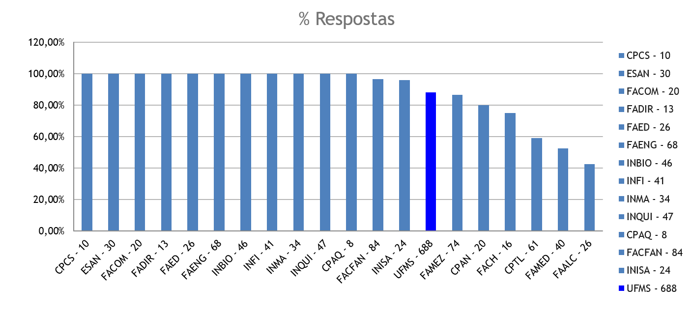 Segundo o levantamento, realizado com os dados enviados até o dia 28 de abril, 26,7% indicaram a necessidade de menos de 34 horas de carga horária presencial para completar o estudo dirigido, e outras 10,6% das disciplinas precisarão uma carga horária presencial superior a 34 horas, além do já ministrado utilizando estudo dirigido, para concluir o conteúdo. Destaca-se que apenas 2,6% do total das turmas dos cursos de graduação da UFMS, incluindo todos os Câmpus, indicaram que somente poderão concluir os conteúdos com aulas presenciais. Nesse percentual, que necessita de aulas presenciais estão sobretudo os cursos da área da Saúde nas suas diferentes Unidades.