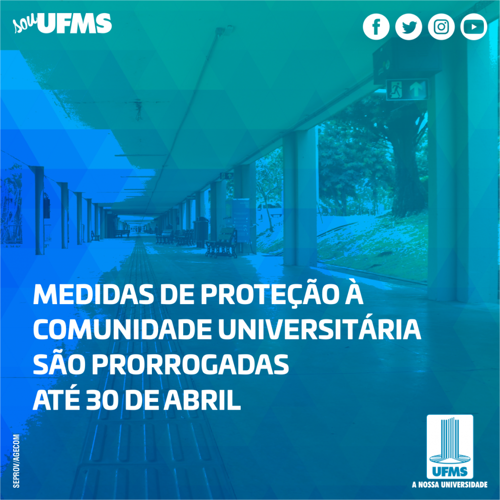 O reitor Marcelo Turine assinou a prorrogação das medidas de proteção à comunidade universitária até o dia 30 de abril, levando em consideração as normativas do Ministério da Economia e do Governo de Mato Grosso do Sul. Com a decisão, permanecem suspensas as atividades presenciais não essenciais, como estabelece a Portaria nº 1.238-RTR/UFMS, de 19 de março de 2021.